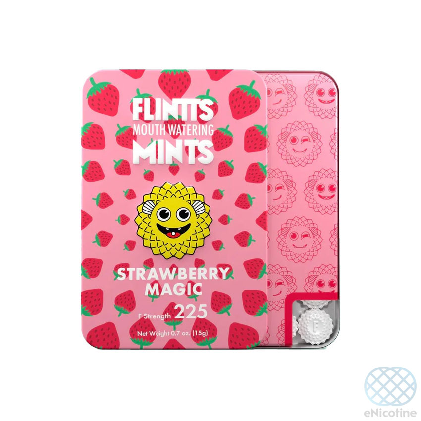 Helpful terms: “Flintts Strawberry Magic,” “F-Strength 225,” “dry mouth mint for vapers,” “saliva-boost mints,” “sugar-free strawberry mint.” Choose F-Strength based on desired tingle; Strawberry Magic 225 is ideal if you prefer a strong, fast-acting sensation with a fruity finish.