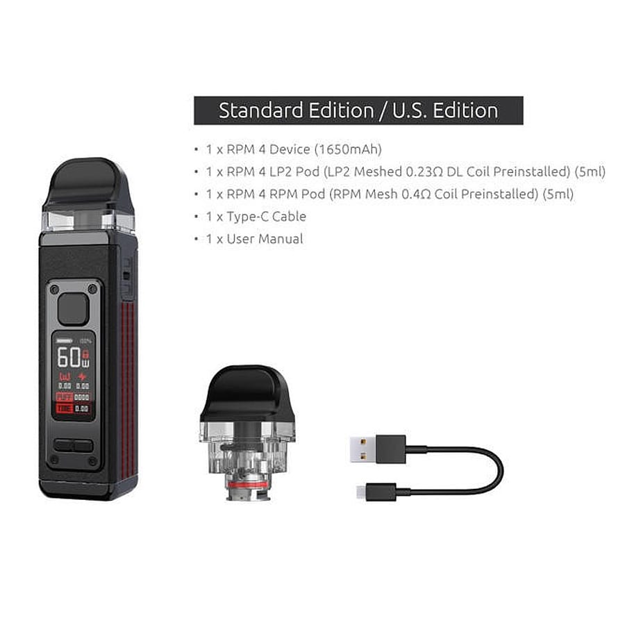 The SMOK RPM 4 is a powerful yet compact pod mod designed to bridge the gap between traditional pod vapes and box mods. Integrated with a 1,650 mAh battery, it delivers 5–60W output, allowing both MTL and DL/RDL vaping styles.