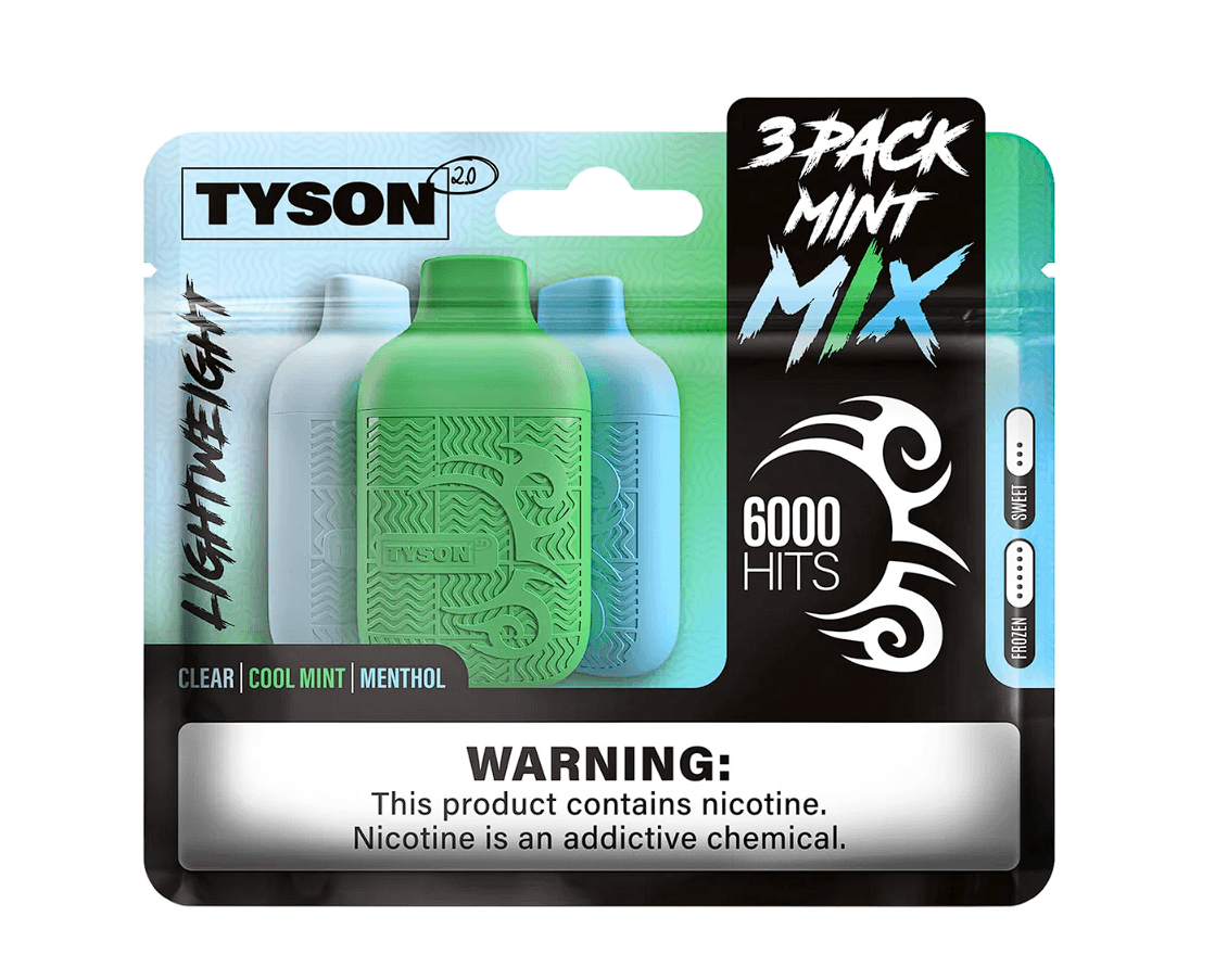 Tyson 2.0 Lightweight Disposable Vape – 6,000 Puffs Total | 50mg | 3-Pack Bundle
